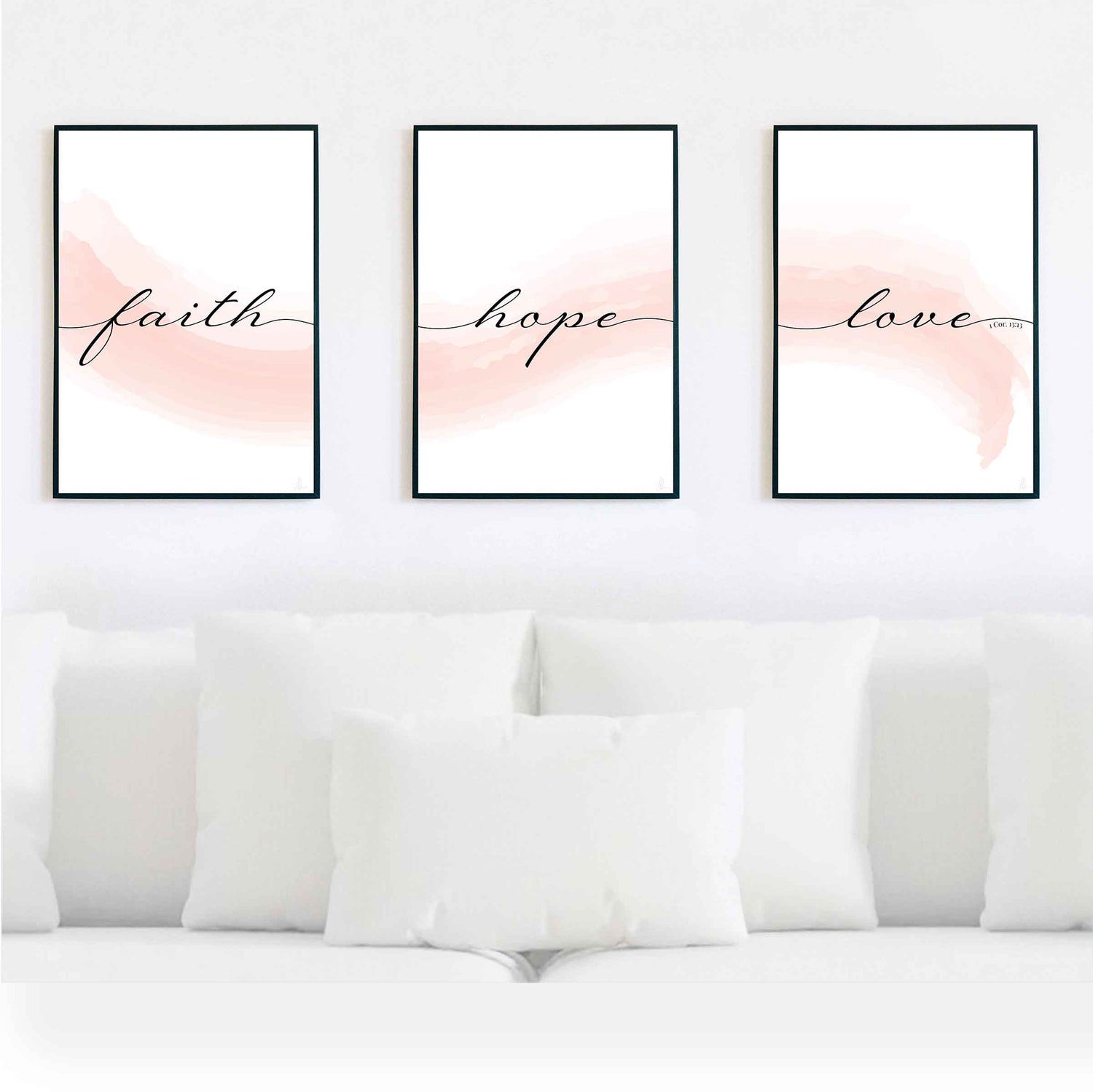 Introducing Faith, Hope, and Love, a luxurious 3-piece wall art collection that would elevate any space.